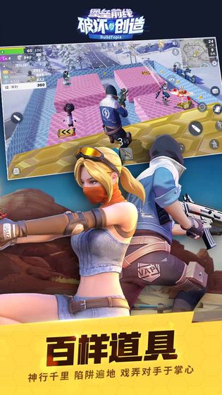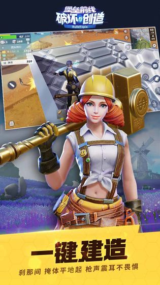 《堡垒前线:破坏与创造》(BuildTopia)是网易2019年全新推出的即时创造射击竞技手游。在大型虚拟仿真小镇“启明星之谷”,收集资源、设计个性建筑,生产机关道具,进行竞争与策略较量。在战场中拾起各种趣味枪械新奇道具,充分发挥自己的射击天赋,赢得战场的制霸!