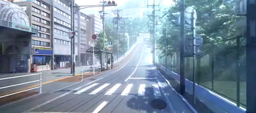 一名黑发少女在巴士站等车,似乎因为家中发生了一些不幸事件,被同学闲言闲语。