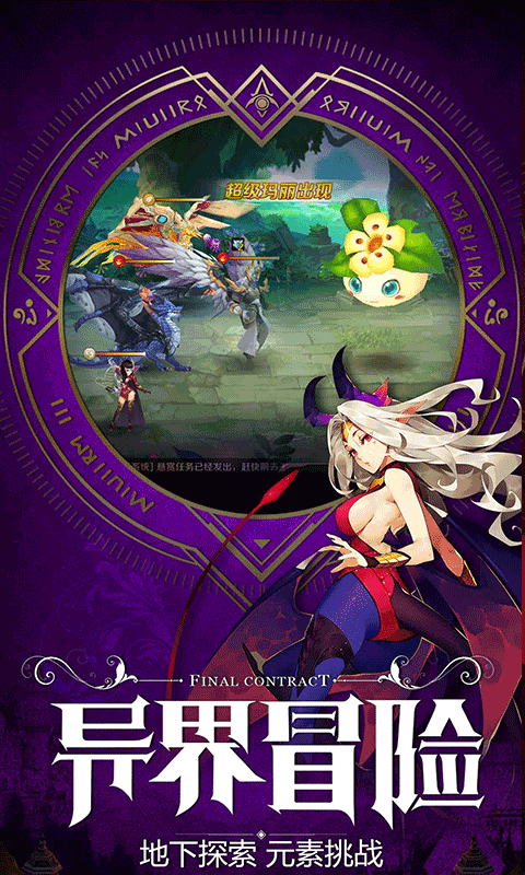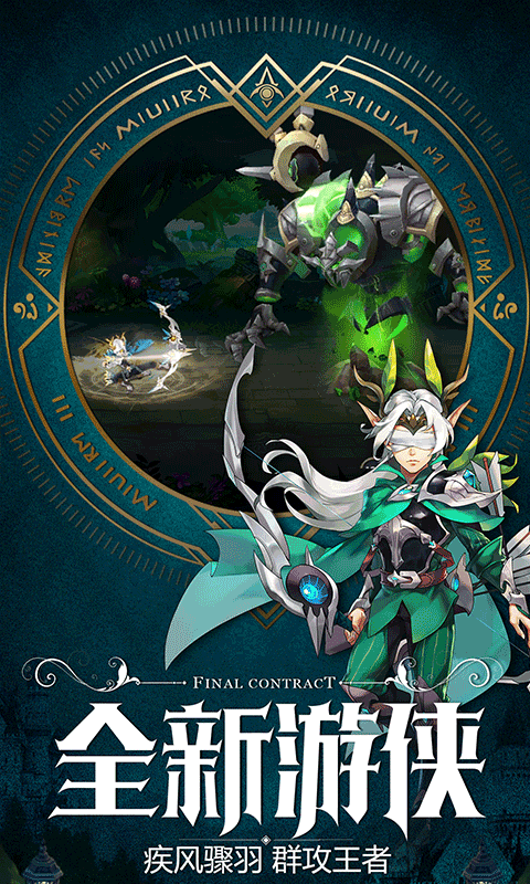 《最终契约》是奥飞游戏推出的一款超欧气回合策略手游。现登陆游戏送SSR英灵!游戏以西方创世纪为故事背景,收录了大天使、恶魔、圣骑士、亡灵骑士、独角兽、魅魔等近百位经典魔幻角色。玩家将扮演掌握契约魔法的精灵贵族,召唤远古英灵,共同对抗邪恶势力。精致细腻的美术风格,深邃奇幻的背景音乐,加上魔兽原班团队的角色配音,给你打造最有代入感的魔幻冒险之旅。庞大的英灵图鉴随心收集,无尽的战术可能等你探索,更有独特的boss战及丰富的游戏内容满足你的策略欲望。超欧气回合策略手游大作,来与英灵签订最终契约吧!