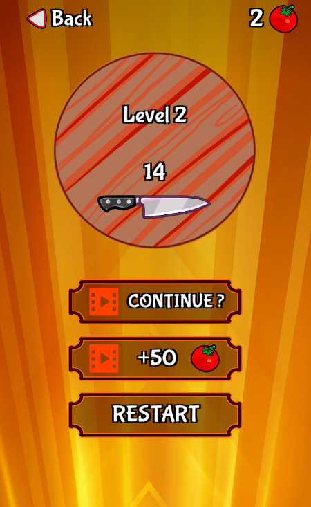 《食物切割(Food Cut)》是款投掷飞刀类的街机类闯关游戏,游戏中你将化身为一名大厨,需要投掷各种不同的武器来打击上方的物体。一款清新风格的投掷飞刀闯关游戏,简约舒适的游戏风格打造,投掷飞刀类的街机类闯关游戏玩法,游戏中你将化身为一名大厨,需要投掷各种不同的武器来打击上方的物体。