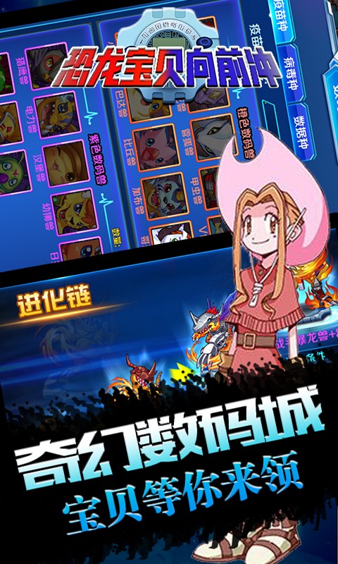 是选择成为太一和亚古兽共同进退的勇气徽章?还是选择和美美和巴鲁兽一起欢乐冒险的纯真徽章?从开局的第一秒起你无时无刻都将面临无言的抉择,复刻童年中最精彩的主角阵容去打倒邪恶拯救数码世界!还是不要!我就是要选择可爱又迷人的反派阵容呢?小丑皇,猩猩兽,我来啦!最新卡牌手游《恐龙宝贝向前冲》统统为您揭晓!近百种数码宝贝任君选择,上千种阵容随心搭配。全新的童年记忆再现,邀你开启不一样的数码历险!