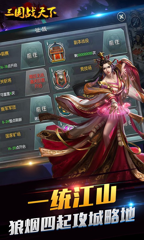 安卓下载 大小:93.48MB 下载:254次 三国战天下 BT游戏天下三国 支 持:安卓 分 类:手机游戏 大 小:93.48MB 版 本:3.2.0 下载量:254次 发 布:2022-07-10 15:05:19 特 色:三国战天下手游下载_三国战天下安卓版下载 安卓下载 #三国战天下截图 #三国战天下简介 三国战天下手游下载是一款经典的三国策略类手游,热血刺激的多人国战玩法,招募著名的三国名将组建自己的势力,一路攻城略地扩张自己的地盘,参与天下之争!喜欢的小伙伴们快来下载吧。游戏特色: 1、爽快的即时策略对战,考验你的布局操作; 2、组建自己的实力,与天下群雄争锋; 3、合理搭配你的阵容,率领部下四处征战; 4、参与经典的三国战役,点燃你的热血激情。游戏介绍: 《三国战天下》是以多人国战玩法为主的三国策略游戏,在保证国战的可玩性,策略性,流畅性的同时,你将通过300座城池,组建自己的势力,亲身参与东汉末年争夺天下一统的三国征途!
