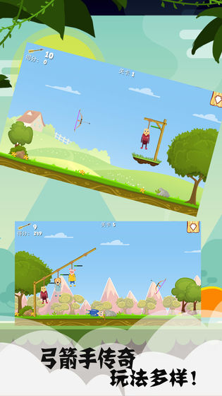 2、控制好方向、力度角度来射出弓箭,要注意弓箭的数量是有限的。
