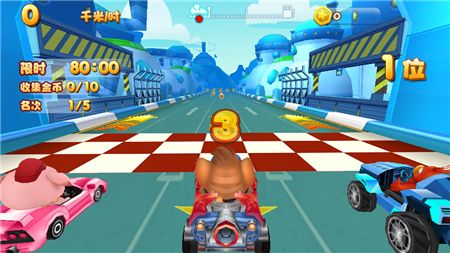《探探猫飞车探险记》是一款由探探猫竞速赛车游戏。可爱的奇幻马戏团角色们化身赛车手,驾驶可爱的卡丁车一起在赛道竞逐!各具效果的道具,击飞对手的飞弹,范围爆炸的导弹,让对手原地打转的香蕉皮,让你体验极限速度的同时感受多样化道具的乐趣。地上有香蕉皮,赶紧转动方向盘!