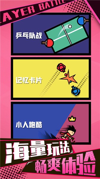 1、轻松有趣的竞技对决的挑战,精致的卡通画风设计搭配新颖的玩法方式;
