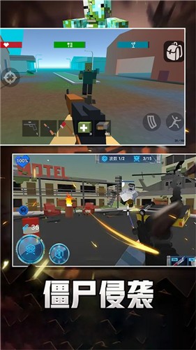 4、玩家们扮演的是卡通可爱的方块人形象的角色,搭配武器装备使用去进行刺激战斗。