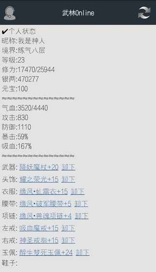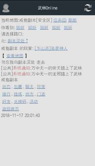 武林Online是一款以武侠为背景的文字冒险游戏,游戏拥有着丰富多彩的剧情故事等你体验,完善多元化的角色养成系统,简单易上手的游戏玩法,让你可以充分的去享受这传奇的武侠世界!