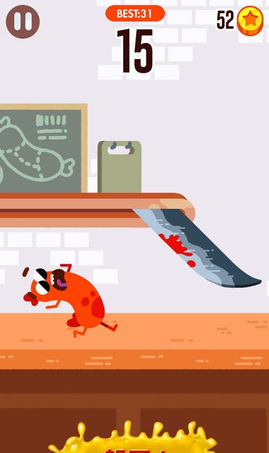 香肠快跑最有趣的的一点是能看到香肠各种的死法,一个在厨房里跑来跑去的香肠,需要躲避各种武器的击杀,需要玩家精准的操控力才能躲避障碍,在游戏中尽可能的收集更多的硬币,可以用来解锁新的皮肤和升级道具!