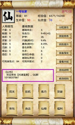安卓下载 大小:6.13MB 下载:992次 问道蓬莱 角色扮演问道 支 持:安卓 分 类:手机游戏 大 小:6.13MB 版 本:1.0 下载量:992次 发 布:2022-07-30 11:29:15 特 色:问道蓬莱下载_问道蓬莱手游安卓版下载 安卓下载 #问道蓬莱截图 #问道蓬莱简介 问道蓬莱是一款趣味性十足的文字冒险游戏,玩家化身修仙者,独自踏上蓬莱,多种竞技模式供玩家选择,游戏拥有多个副本等着你的挑战,轻松简洁的文字类玩法,给你无穷的乐趣,快来下载试试吧!游戏特色1、画面很简洁,多种竞技模式供玩家选择2、游戏拥有多个副本等着你的挑战,奖励丰厚3、8项属性自由分配,14种天赋自由加点4、自由开放式的养成玩法给你无穷的乐趣编辑点评问道蓬莱手游画面很简洁,还有多种竞技模式供玩家选择,游戏拥有多个副本等着你的挑战,游戏内容很丰富,具有很强的可玩性,全部都是以文字的形式表现出来,很有趣味性。