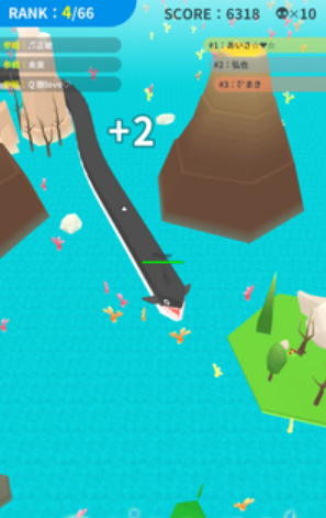 约50只动物以海洋为舞台,操作的动物可以通过吃掉在地图里的珊瑚,或者吃比自己小的动物来伸展身体。在这个地图中,以成为最长的动物为目标,与其他角色竞争是本作的基本规则。游戏采用卡通的画风为主,十分的具有治愈性,玩家将需要控制着动物不断的吞噬珊瑚,来变得更长,并可以吞吃比你小的玩家。