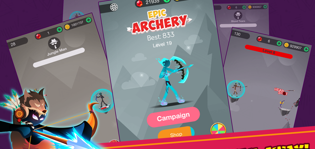 火柴人史诗射击是一款以火柴人为原型的射击类手游,游戏中有不同的火柴人角色还有武器,玩家可以自由选择,玩法也很简单,小伙伴们操控火柴人射击,只要点击屏幕从拉动并从弓箭中飞出箭头就可以了,当中还有很多艰难的任务需要你们去完成,怎样才能证明你是史上终极射手呢,证明自己的时候到了。
