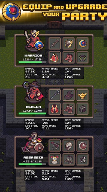 是一款地牢题材的冒险类角色扮演手游,游戏采用经典的像素画风,玩法主要包括探索、收集以及对战等。游戏剧情丰富,可以给你提供帮助的元素也非常多,玩家可以给英雄指派任务,但是要确保他们的装备和药品能够让他们得以存活。喜欢的玩家可千万不要错过哦!