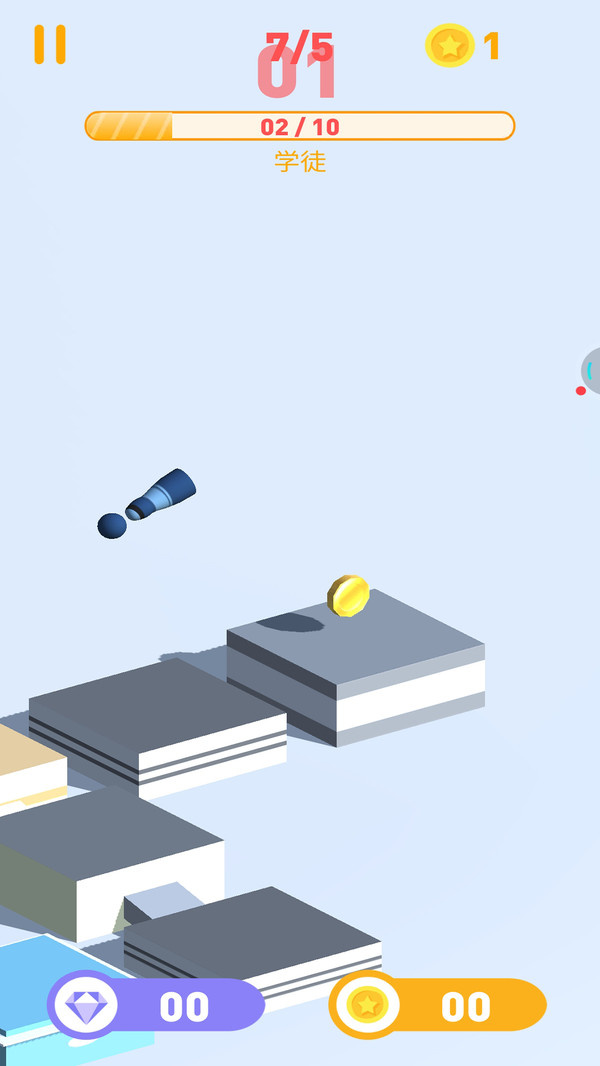 1、在游戏中你玩家需要精确的去估算蓄力值是多少,来保证里面的小人落在前面的方块上面;