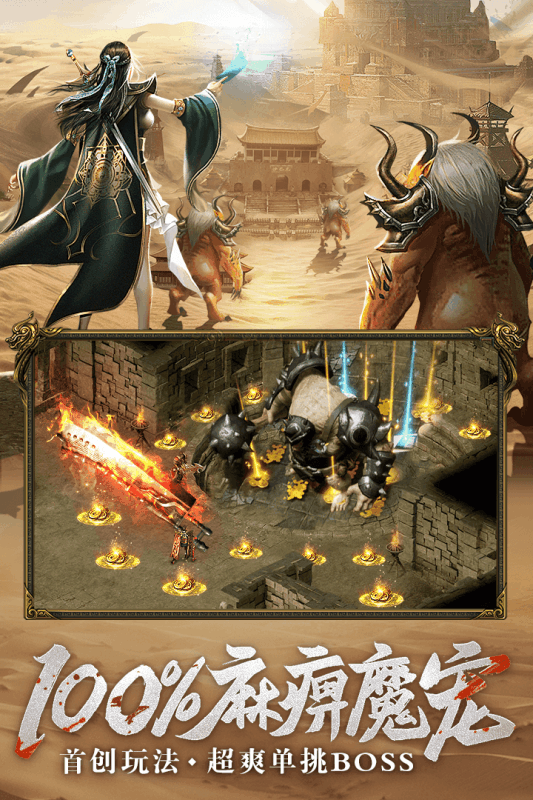 经典还原玩法,万人同屏奋战,让你回到那个激情的青春岁月,用PK去捍卫你们的荣耀!BOSS百倍掉率,极品神装你来就送!打宝回收赚元宝,0冲体验一样爽!离线挂机经验多,经验再也不落后!兄弟组队,一统天下!
