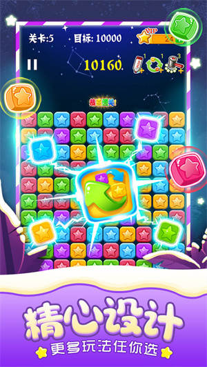 -将各种各样不同的星星去消除就可以让你获取到分数的,在这里不断的去进行消除来突破自己;
