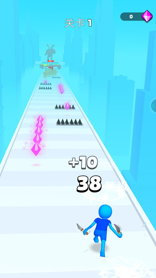 2、我们需要去击败道路上面的敌人,去不断地往前去冲刺,再去解锁更多的道具来闯关;