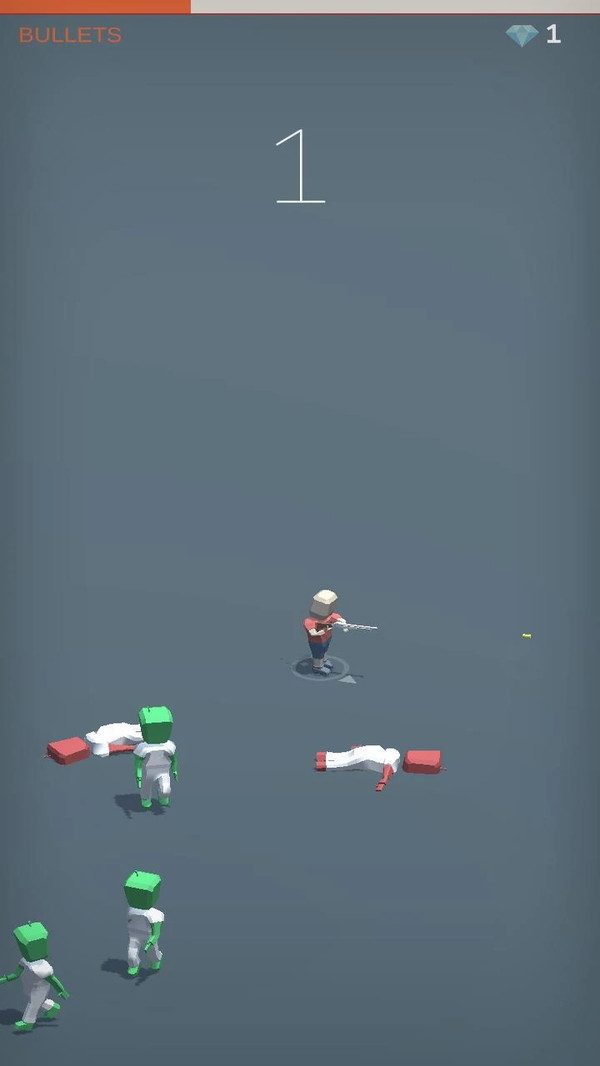 一款简易风格的趣味射击游戏。简约大方的画面设计,在这里玩家不可以停止射击,同时也不能对准敌方,玩家要找到适合的地方,保证自己能够顺利通关。游戏中玩家需要进行不停的射击,注意不要伤及无辜,不然他们会生气,击倒你的敌人收集宝石,升级你的装备武器,解锁更多角色,体验畅快的射击!