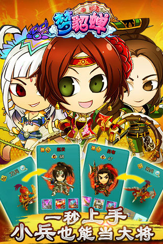 梦貂蝉是一款以三国为背景的Q版策略卡牌对战手游,游戏拥有着Q版精美的美术风格,上百位超萌Q化的三国武将等你收集,完善丰富的技能树系统,更有着丰富爆笑的剧情故事等你体验,喜欢的小伙伴快来下载吧!