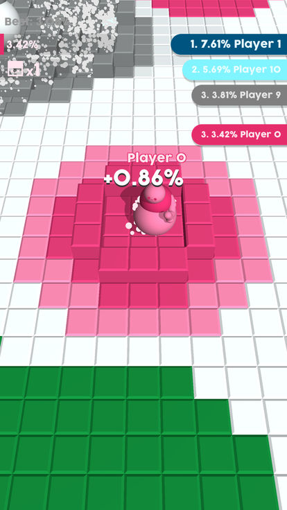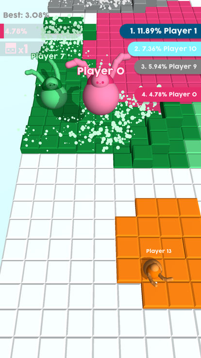 移动周围的竞技场和踩颜色的网格!通过踩踏其他玩家而变得更大,通过抓取整个网格来赢得胜利!你踩碎的方块越多,小人的体积就会越大,这样你就可以去击败同场的玩家,站到最后,赢得胜利。
