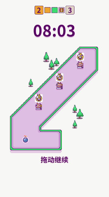 指尖炸弹是一款非常好玩的休闲游戏,你需要在炸弹的引线烧完钱将地图上的所有目标兔子给炸翻。游戏的操作还是很简单的,不过往后面的关卡引线时间会越来越短,而且关卡目标也会变多,需要合理的选择炸弹飞行方向才能在规定时间内完成目标。