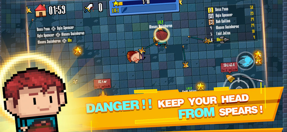 SpearKnight.io是一款非常刺激的射击竞技休闲手机游戏,游戏以经典街机像素风格打造的画面,控制着像素小人在地图中进行混斗,自由拾取地上的武器进行射击,尽可能的生存的即可获胜。