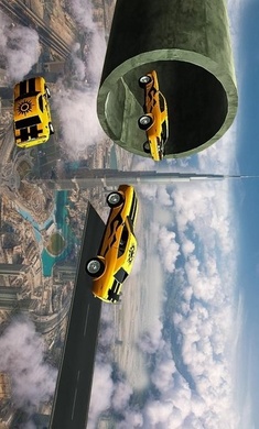 2、驾驶汽车在天空赛道通过重重的机关;