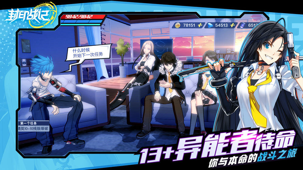 一款科幻风格二次元动漫角色扮演冒险战斗手游,游戏美术绘画各类型的异能封印者,每个角色拥有超异能力,海量的玩法模式任务,集结其它英雄一起展开对决,连招,大招,各种流派技能战斗,炫酷全屏,快开启你的异世界冒险吧。