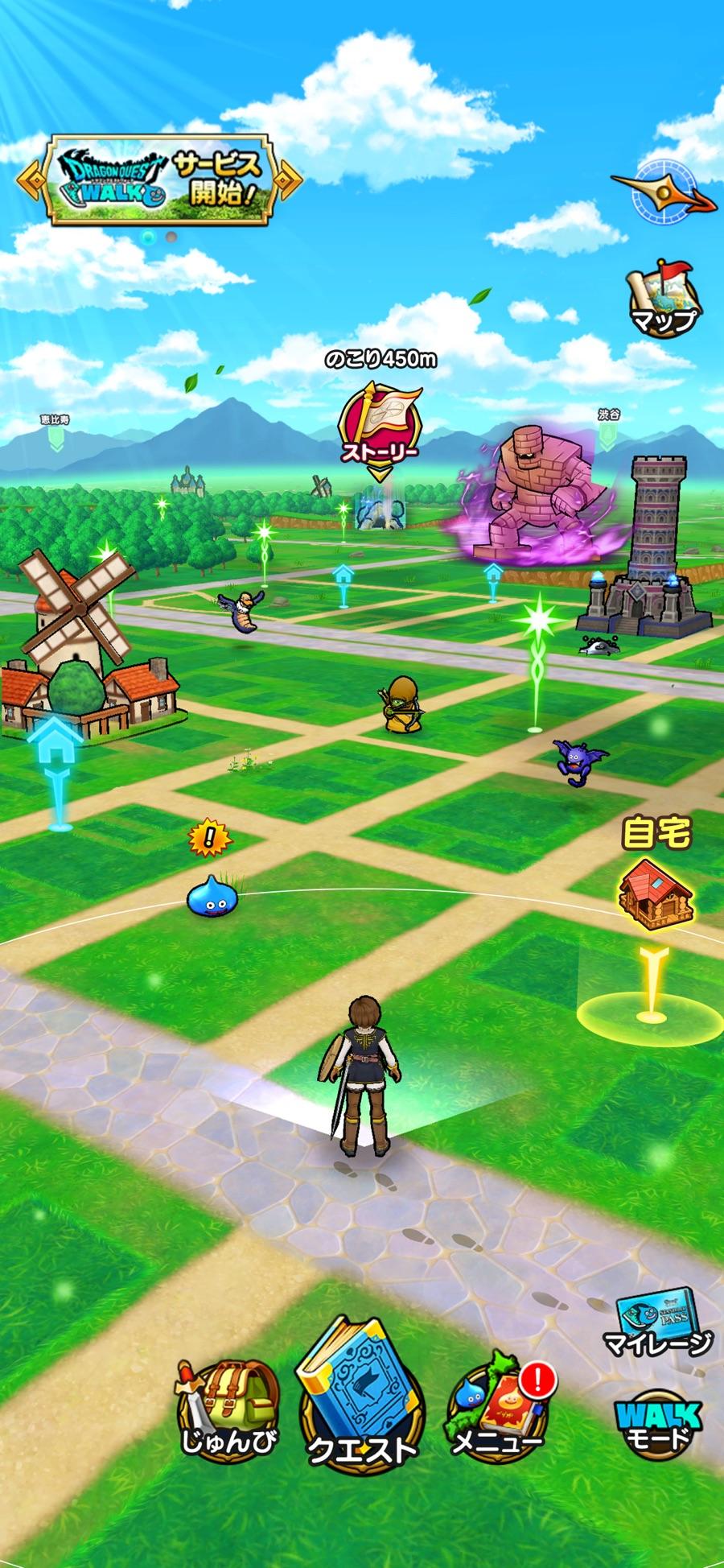 勇者斗恶龙步行是一款根据热门的动漫改编打造的AR冒险战斗游戏,游戏的玩法和精灵宝可梦相似,结合了虚拟现实AR,探索真实世界捕捉隐藏的魔物,可以收集和养成你的魔物,丰富多样的战斗任务感受真实怪兽大战。
