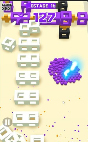 游戏的画面采用了非常精简的设计风格,各种颜色的积木组成各式各样的关卡;关卡的种类非常丰富,挑战性也各不相同,玩法富有乐趣,减压效果很显著;操作模式很简单,只需要轻松的滑动屏幕控制着小球向前突进就可以轻松体验。