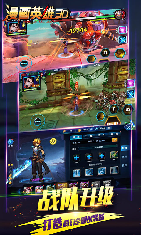 《漫画英雄3D》全新版本、全新玩法、全新体验,定义3D ARPG动作手游新纪元!游戏采用尖端引擎技术搭配各种原创音乐呈现殿堂级视听,为玩家打造了一个充满漫画、动漫元素的地下城世界。全开放式即时PK遭遇战,让你在战场自由驰骋,随时随地,爽快暴击!世界boss乱斗,跨服PK战,让你畅享爽快的打击感!无数种阵容搭配,绚丽的技能,让你驰骋在地下城世界。