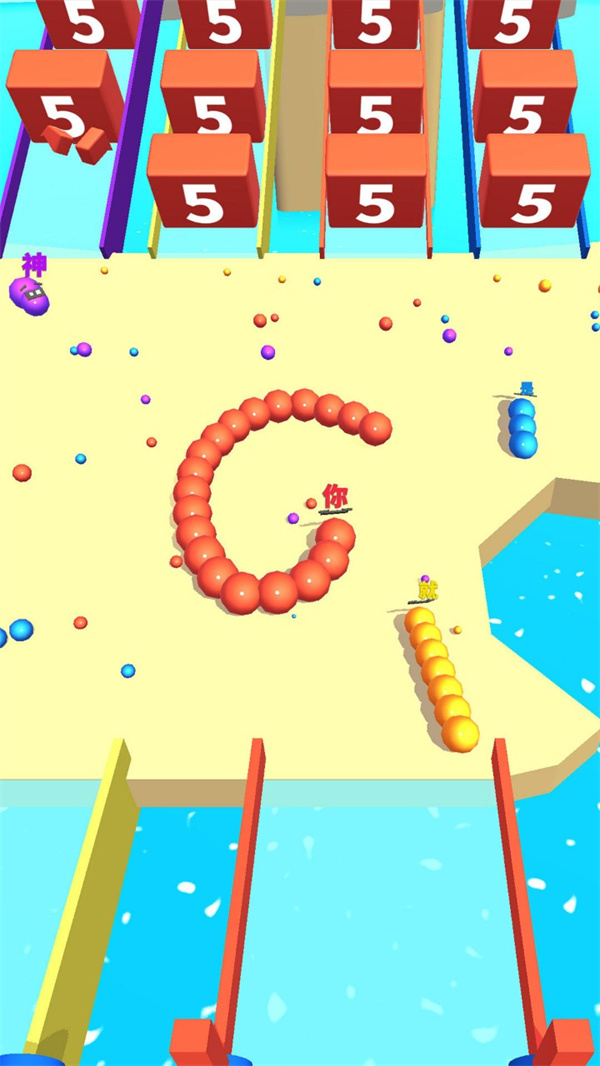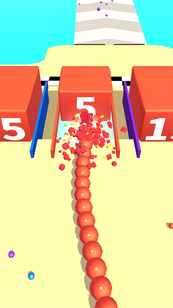 1、玩家在游戏中去不停的去运动,在这里去跳过所有的障碍去灵活的走位,不要去撞到了;