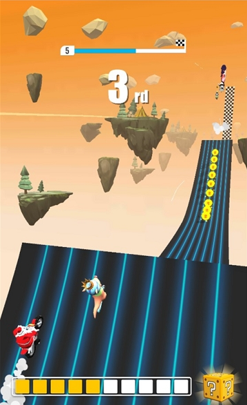 3、运用酷炫的特技动作不断翻转前进闯关;