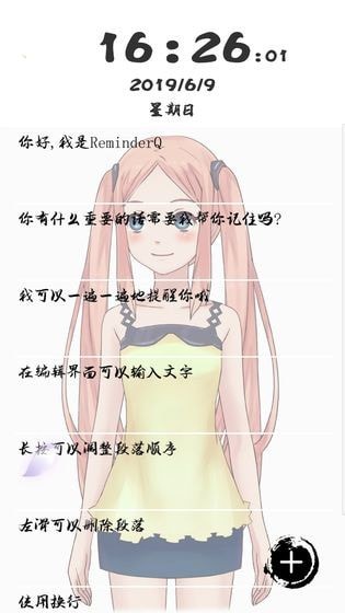 玩家将游戏运行之后会进入主界面,出现一个十分可爱的二次元女孩ReminderQ。