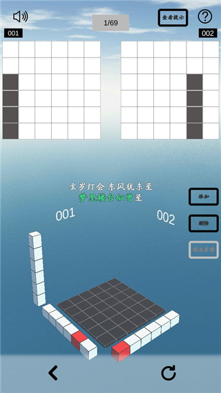 2、在游戏中去根据关卡所给出的投影去把里面的立体拼接起来的,在这里去完成需要的立体图案;