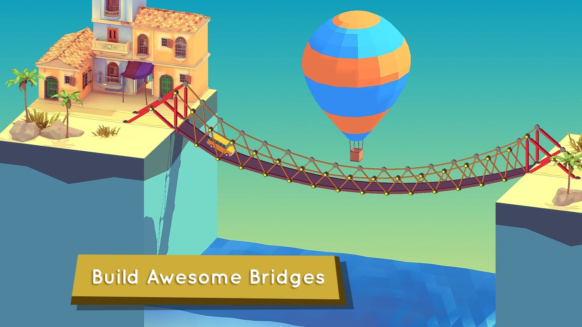 1、很有趣的搭桥闯关的游戏,通过搭桥的方式来让各种车辆通过到达对面完成闯关;