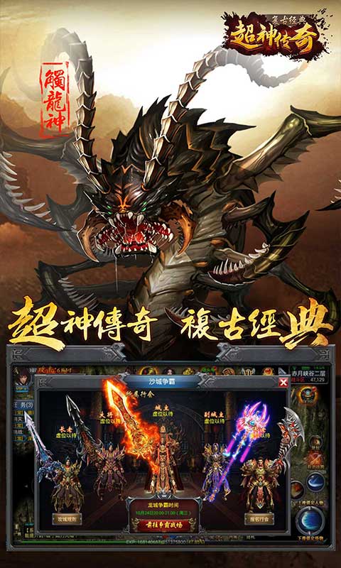 安卓下载 大小:153.23MB 下载:220次 超神传奇 角色扮演传奇手游 支 持:安卓 分 类:手机游戏 大 小:153.23MB 版 本:1.0.0 下载量:220次 发 布:2022-09-15 13:01:52 特 色:超神传奇游戏下载_超神传奇游戏安卓版下载 安卓下载 #超神传奇截图 #超神传奇简介 超神传奇游戏下载是一款经典的传奇题材RPG手游,经典复古的传奇端游玩法,带你重温曾经的热血激情,和兄弟们再次相聚玛法大陆,感受热血刺激的战斗!喜欢的朋友们快来下载吧。游戏特色: 1、复刻经典的传奇端游玩法,感受热血战斗; 2、装备道具自由交易,快速提升自己的战力; 3、万人同屏在线激战,重现热血攻城盛况; 4、超多福利任你领取,真人玩家跨服对战。游戏介绍: 一款重现经典pk竞技玩法的多人在线RPG游戏,这里既有蜈蚣恶兽出没的洞穴,也有金属卫士守卫的神庙,有象征着权力荣耀的城池,也有广阔的异域空间,这些地方都是可以被探索征服的,勇士集结起来一起奋战吧!