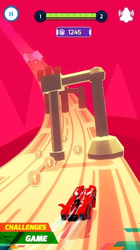 4.再告诉赛道上面体验刺激的疯狂的涡轮增加飞船的赛车冲刺的速度。