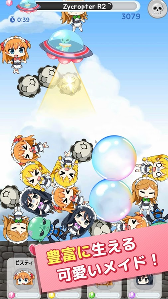 收集3个相同的女仆以此攻击不明飞行物!