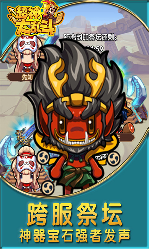 《超神大乱斗》是一款高自由度成长放置类手游。游戏由超强团队倾力打造,顶级画师倾力奉献;Q萌精致的手绘风格,各具魅力的人物角色,给你不一样的游戏体验!游戏无职业限制,资源自由采集,自主选择培养方式,一款真正的全自由成长放置手游!