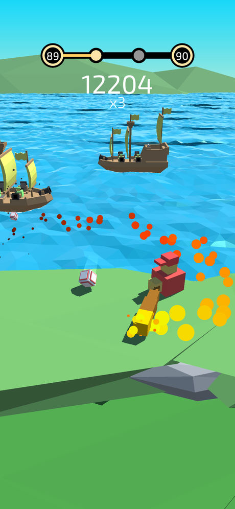 2、自由地挥舞着棒球棍,将远处的小船全部击碎;