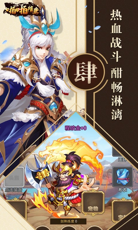 啪啪隋唐(BT版)是首款隋唐题材策略卡牌手游,收集隋唐群周四大阵营名将,抢夺BOSS集齐神装,修炼超强必杀技、组合技,抓捕各种神奇宠物,称霸天下,等你来战。