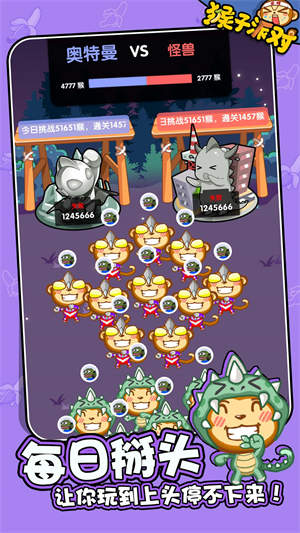 1、在这个全是小猴子的世界中去进行游戏,各种各样不同的玩法和内容可以让你来感受的;