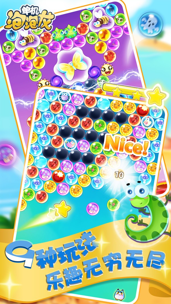 安卓下载 大小:23.27MB 下载:608次 单机泡泡龙 益智休闲 支 持:安卓 分 类:手机游戏 大 小:23.27MB 版 本:1.0.0 下载量:608次 发 布:2022-10-02 09:45:13 特 色:单机泡泡龙手机版下载_单机泡泡龙道具手机版下载 安卓下载 #单机泡泡龙截图 #单机泡泡龙简介 单机泡泡龙是一款非常好玩的休闲射击闯关游戏,游戏延续了经典泡泡龙玩法,丰富众多的道具给你的消除乐趣,准确的射击消除所有的泡泡完成挑战,丰富众多的道具和装备可供使用。游戏特色1、动画卡通风格的画风经典泡泡龙;2、融合了射击和消除的元素无比的刺激;3、10多个不同的主题场景丰富的内容;4、轻松欢快的游戏背景音乐放松和解压;编辑点评一款休闲的泡泡龙游戏,精心策划的关卡,好好利用每一个泡泡击碎它们完成关卡,9种模式关卡趣味十足,感受10种不同地图元素,上千个关卡,准备好和女巫一起去冒险吧!