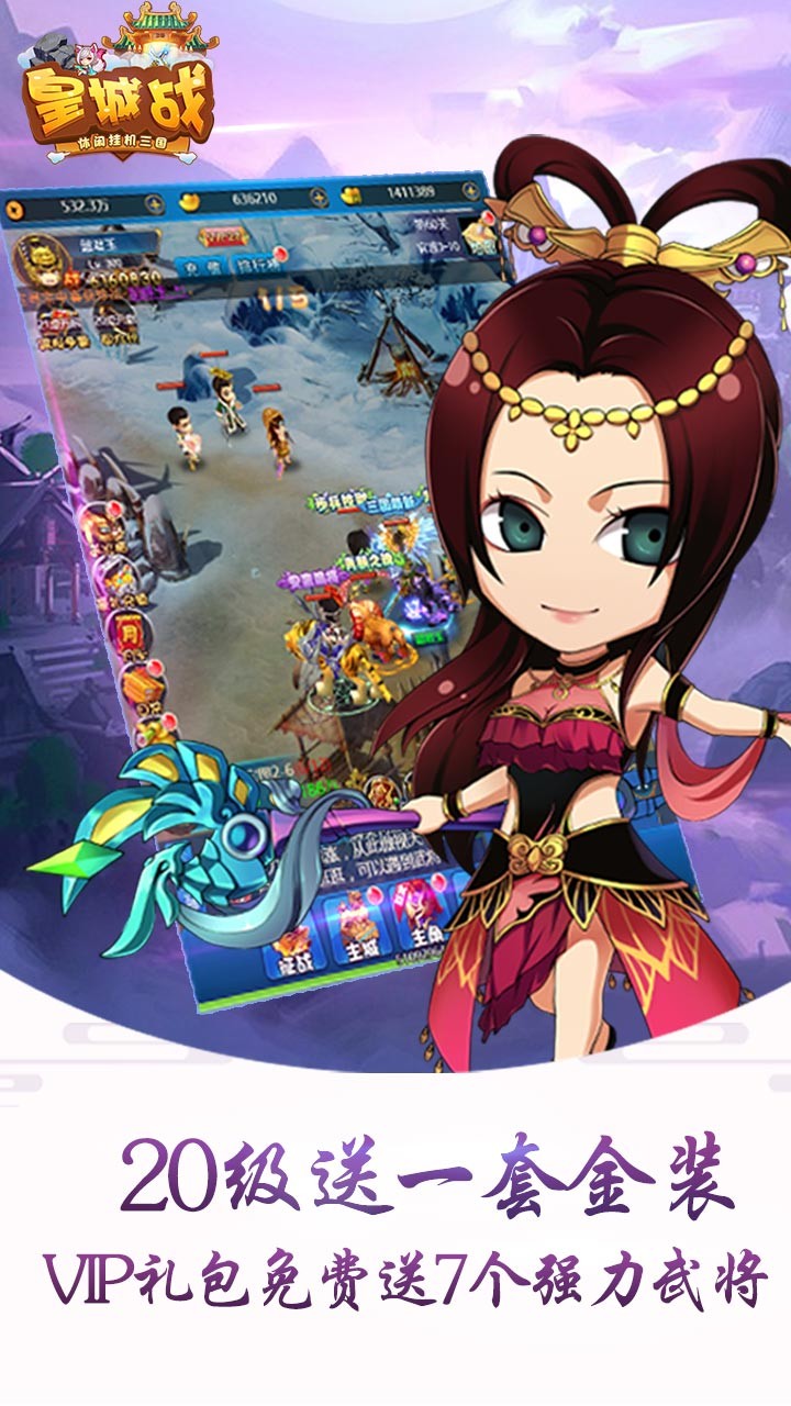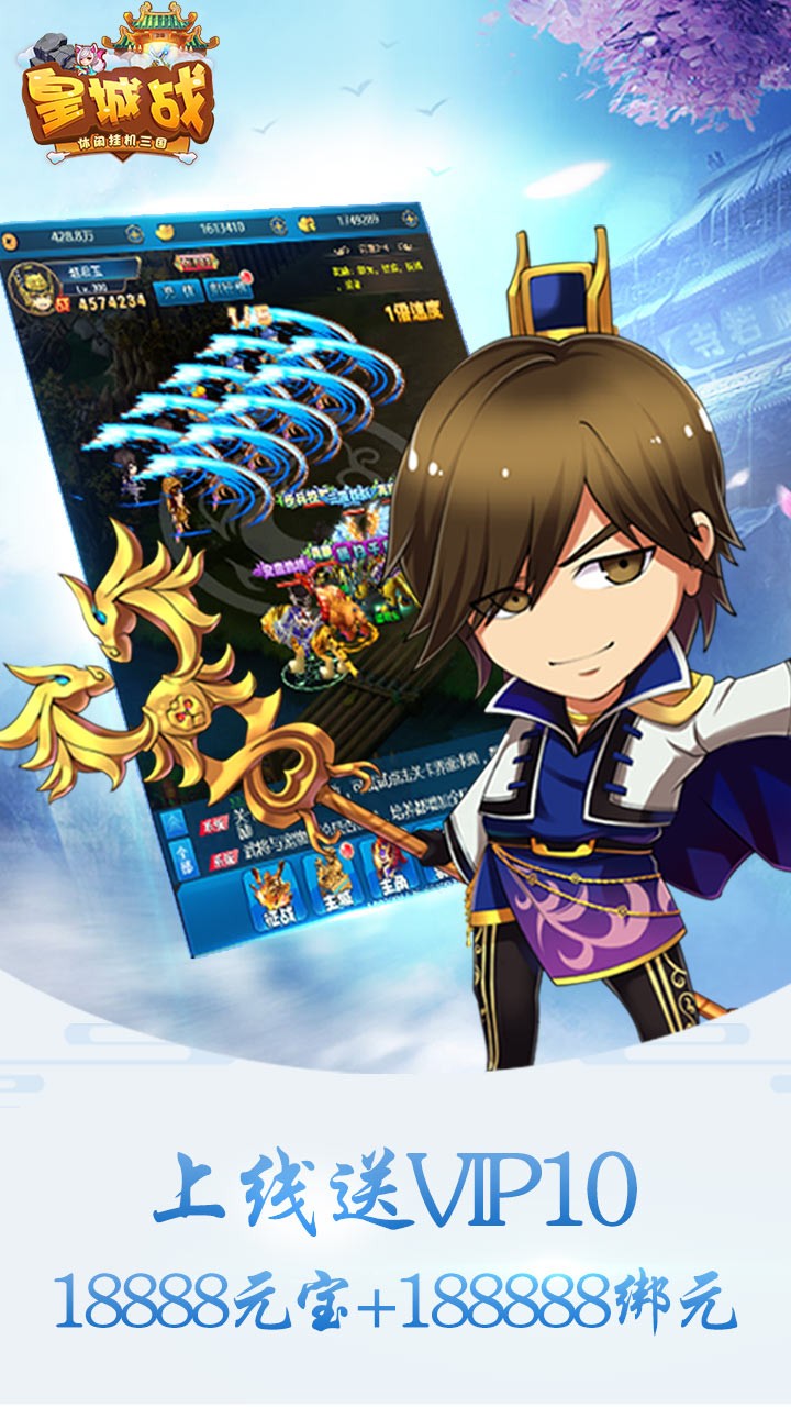 皇城战是一款玄幻的三国题材动作手游,游戏拥有超多的福利进行赠送,上线即送VIP10已经丰富的游戏元宝等,让玩家们体验一个畅快的游戏过程,喜欢这款游戏的欢迎下载。