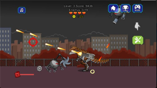 4、丰富的游戏关卡各种类型的机器人进行消灭,挑战丰富的关卡吧。