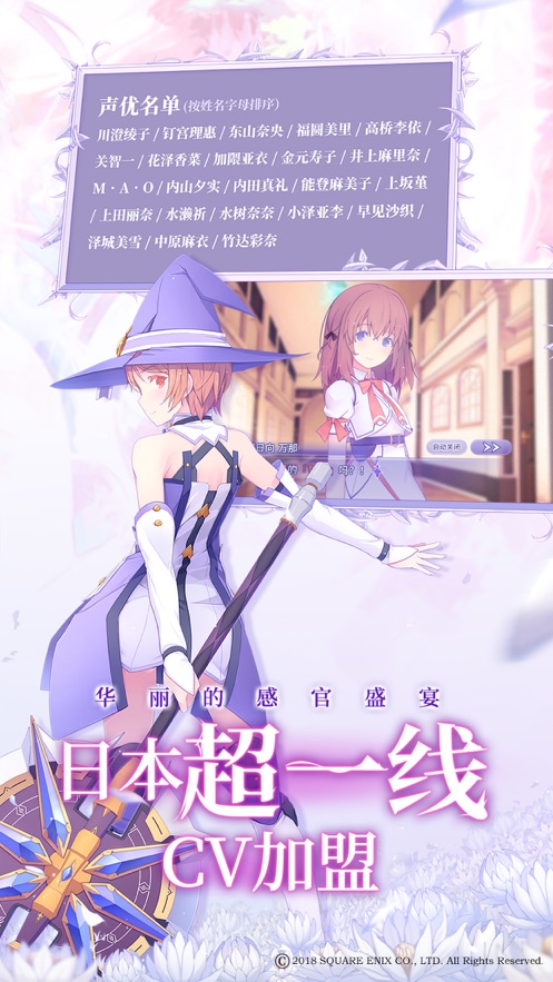 人气插画家RUROO(るろお)老师担任游戏的角色设定,描绘了一个美丽而残酷的魔法少女世界。水濑祈、上坂堇、钉宫理惠、水树奈奈、花泽香菜等顶级CV倾情献声,为你开启华丽的视听享受。