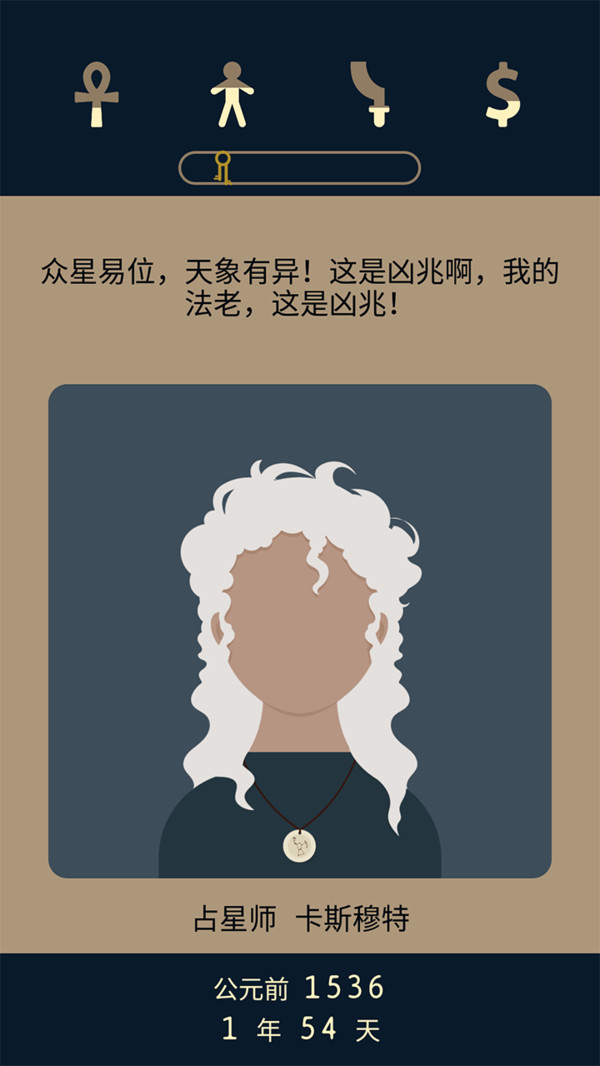 1、简约精致的游戏画面,各种古老的法老王国的图案图形;