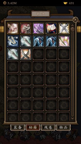 4、丰富的武学秘籍,通过收集获取帮助自己进行提升。