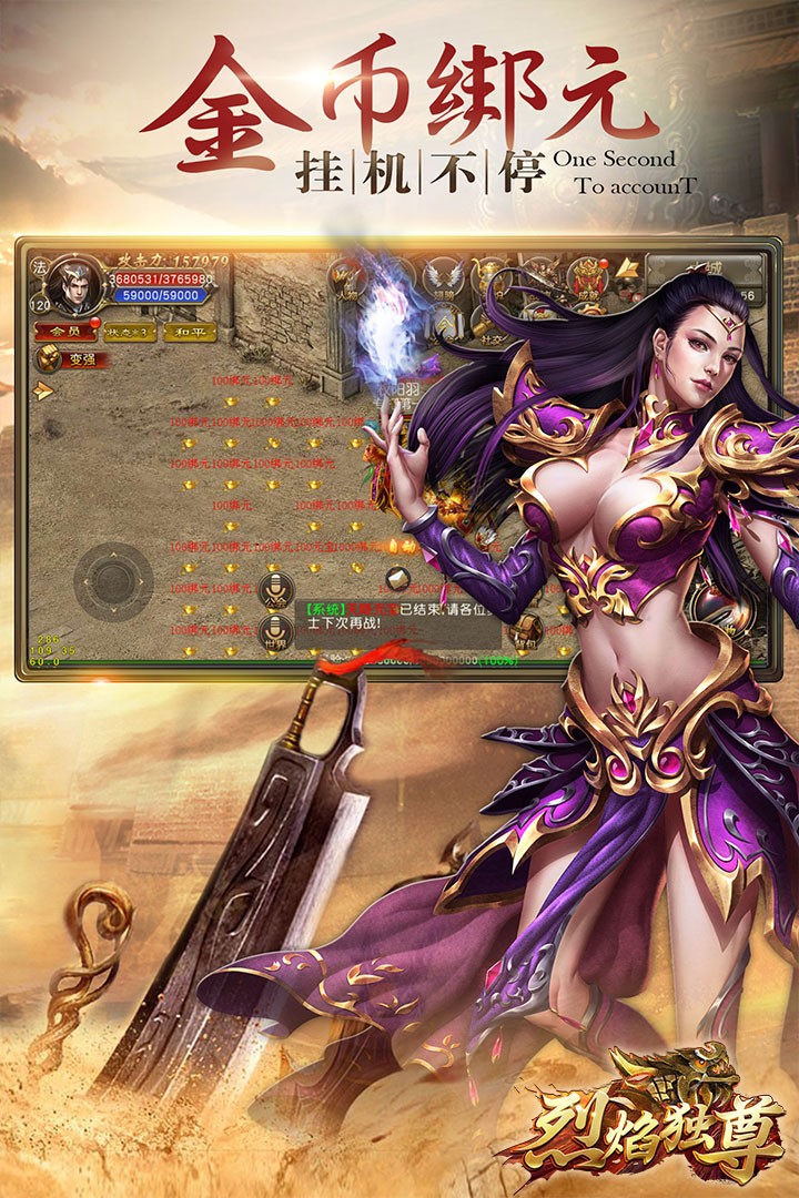 安卓下载 大小:30.51MB 下载:760次 烈焰独尊 角色扮演 支 持:安卓 分 类:手机游戏 大 小:30.51MB 版 本:1.0.1 下载量:760次 发 布:2022-10-08 10:09:23 特 色:烈焰独尊下载_烈焰独尊游戏安卓版下载 安卓下载 #烈焰独尊截图 #烈焰独尊简介 烈焰独尊是一款经典的传奇类角色扮演游戏,玩家们可以召集各种小伙伴一起在这个豪华炫丽的传奇世界里享受各种畅快的战斗,一起体验挂机也能获取超多奖励的传奇游戏。游戏特色1、炫酷的神器可以掉落爆取等你来挑战获取;2、超强的战斗力助你单挑BOSS狂刷各种神装;3、金币绑元享受挂机打钱的方式,乐趣不断;4、畅快的竞技PK对决用你的实力与技术说话。游戏介绍《烈焰独尊》是是一款经典怀旧的RPG手游,完美复刻静经典场景、生效,再现一代人的青春,这个豪华绚丽的传奇世界,即将在你眼前徐徐展开!总有一天,我要这天再也遮不住我的眼,视线所及,九界俯首,十方皆寂,万族独尊!