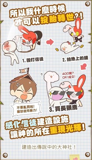 大小:0MB 下载:828次 病病神社建造中 益智休闲 支 持:安卓 分 类:手机游戏 大 小:0MB 版 本: 下载量:828次 发 布:2022-10-08 13:33:43 特 色:病病神社建造中下载(暂未上线)_病病神社建造中游戏安卓版下载 #病病神社建造中截图 #病病神社建造中简介 病病神社建造中是一款全新的别具特色的卡通题材益智休闲类游戏,玩家们可以尽情的发挥自己的想象进行建造各种神社设施,各种超爆笑的剧情以及丰富的游戏玩法等你来下载。游戏特色1、精致的卡通游戏图形,大肆的绽放属于自己的创作。2、可以进行感化信徒建造许多设施创造传说的大神社;3、各种爆笑的复杂剧情享受充满欢乐的手机游戏;4、为自己喜爱的角色进行搭配经典的服饰套装。游戏介绍台湾工作室 有病制作 宣布将推出新作《病病神社建造中》。与前作《我满怀希望的有病信仰》等不同,玩家将扮演一名神社建造师,在兔兔和猫猫的协助下摆放建筑、殴打信徒,建造出香火鼎盛的神社街道。